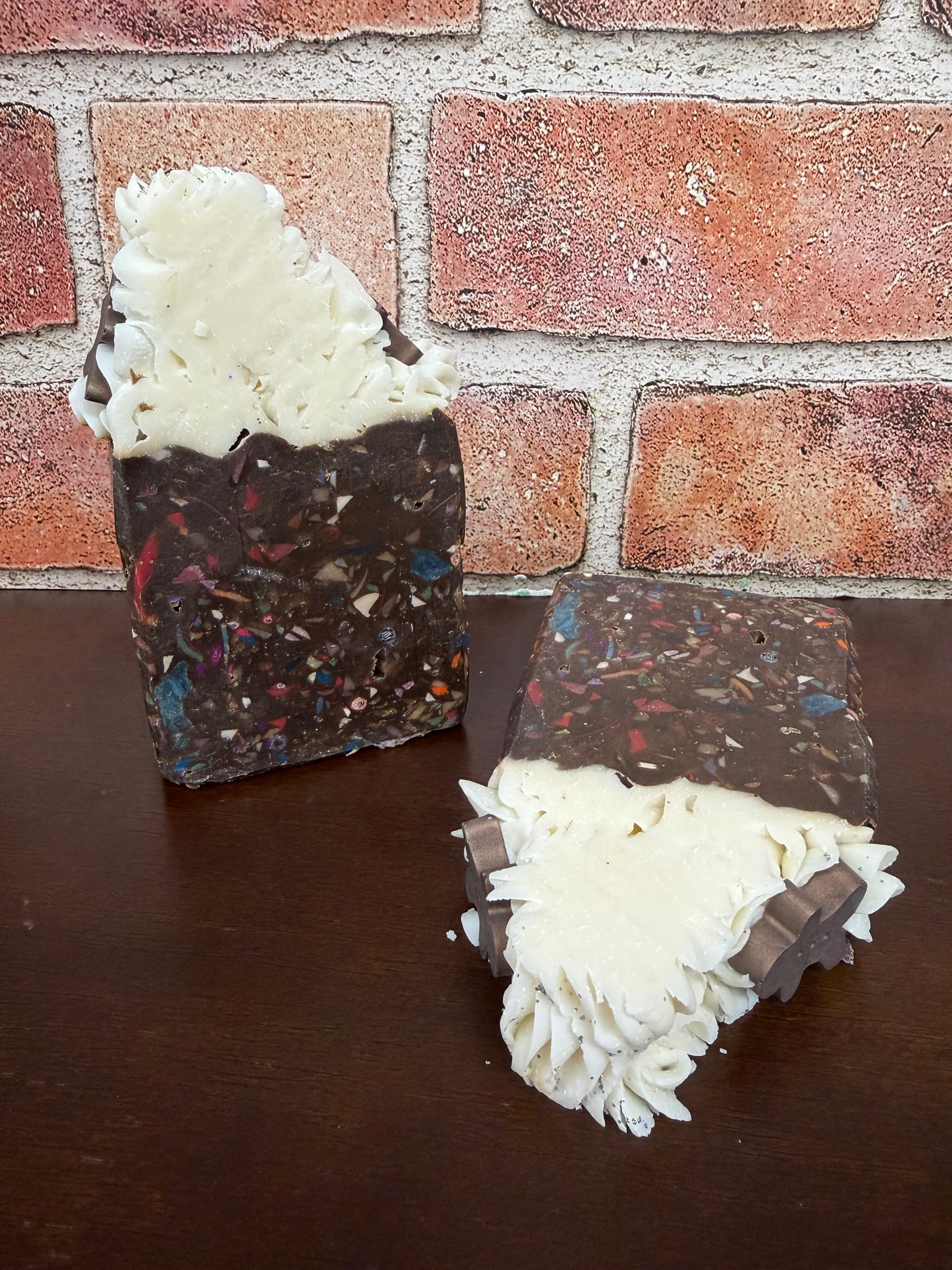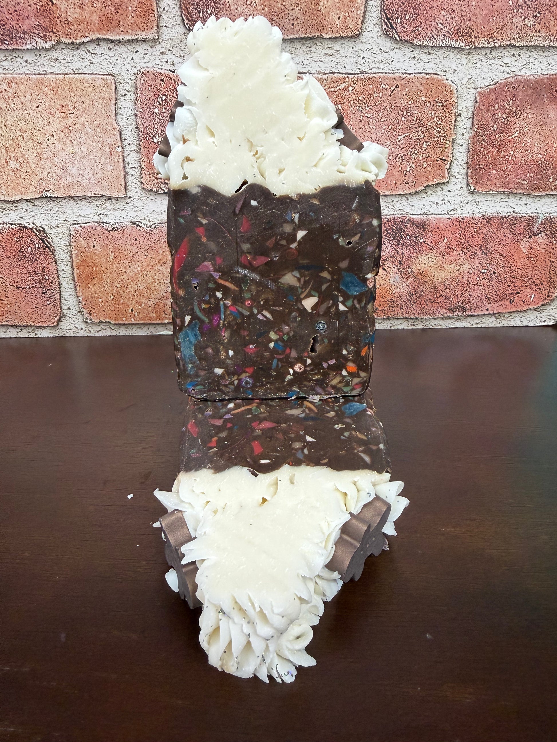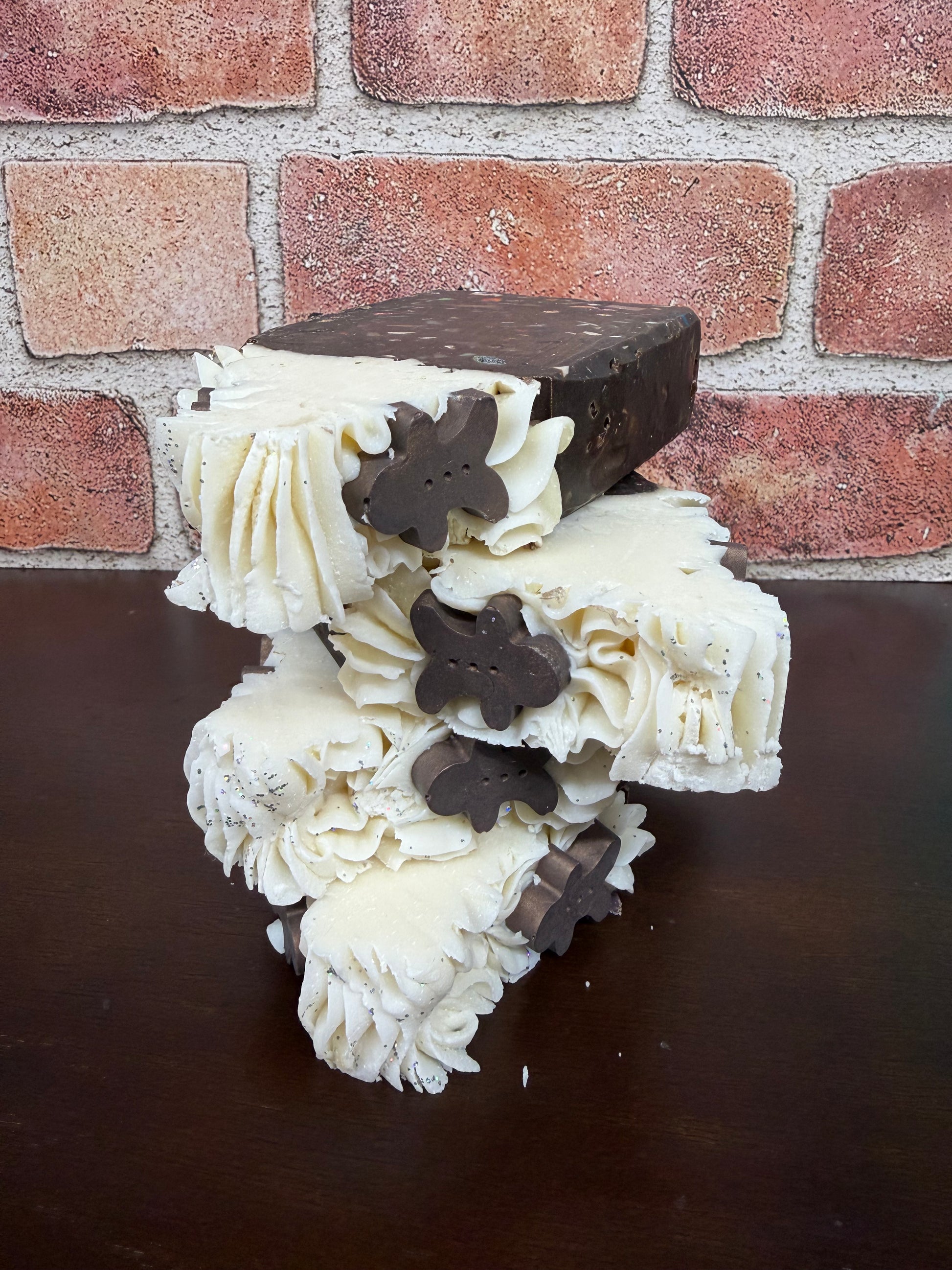 This is a remake of Sprinkles and Spice made with an updated recipe and the original fragrance and design. Scented with Gingerbread Cookie Fragrance oils. This soap smells just like Christmas.