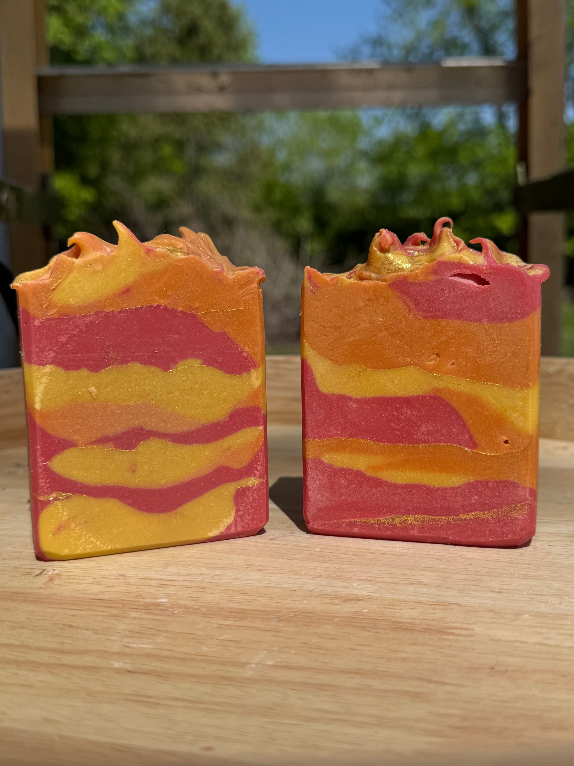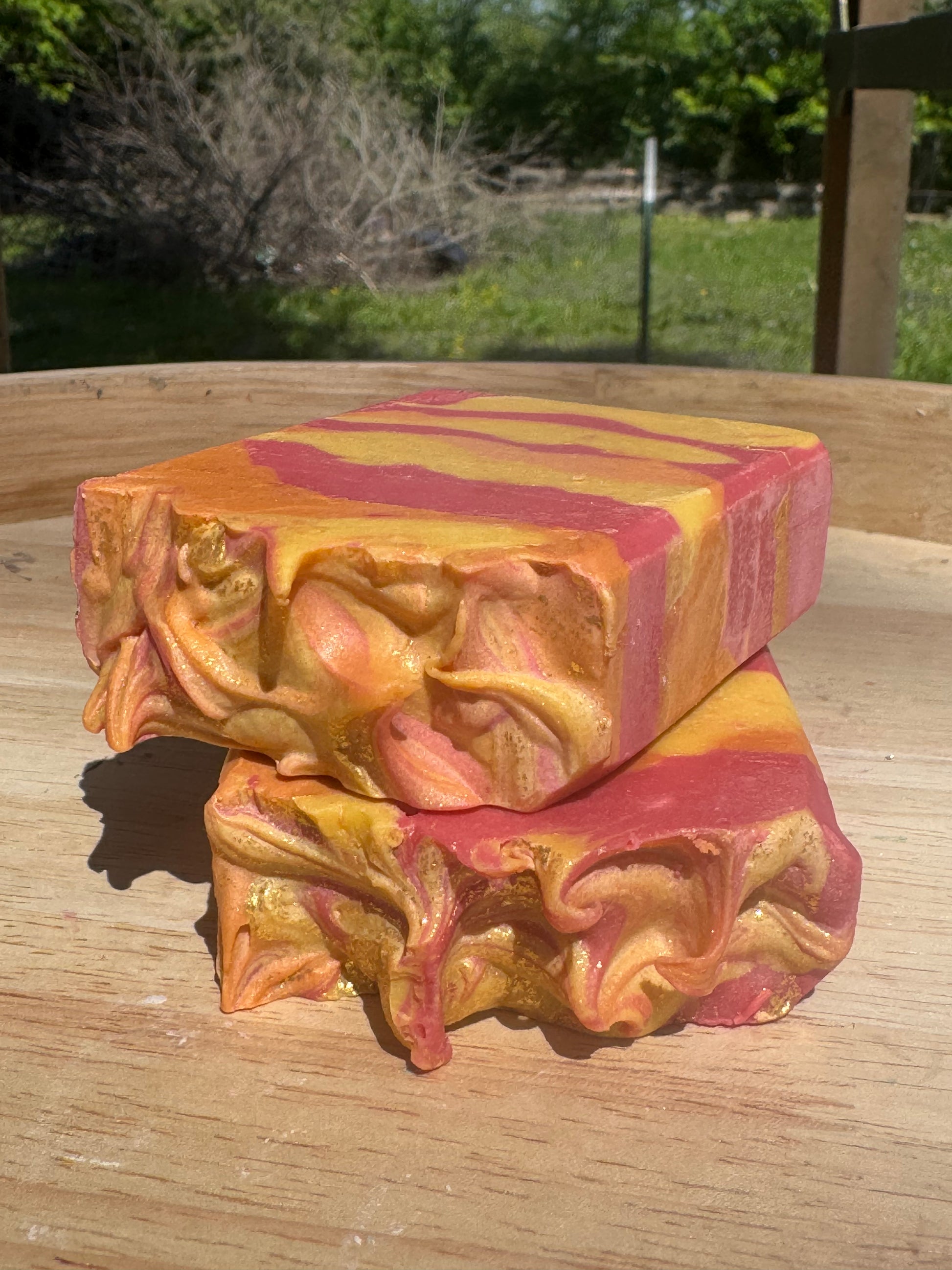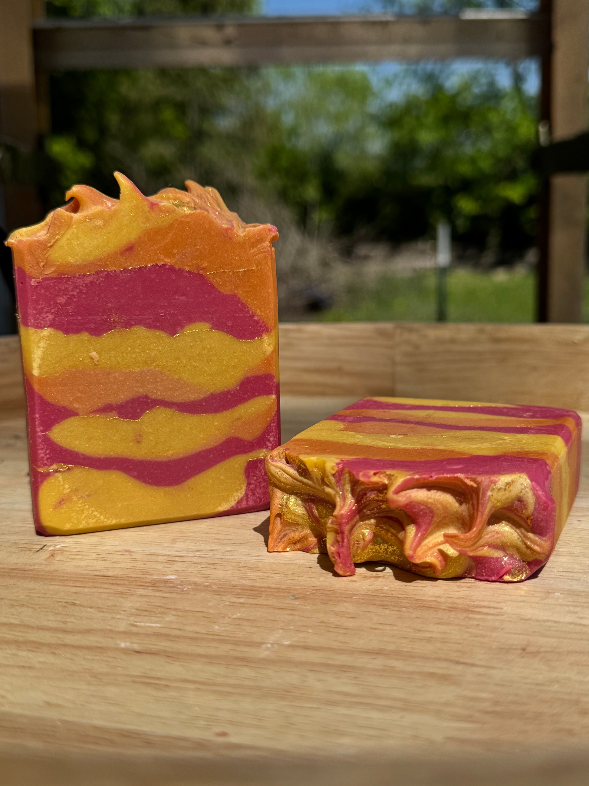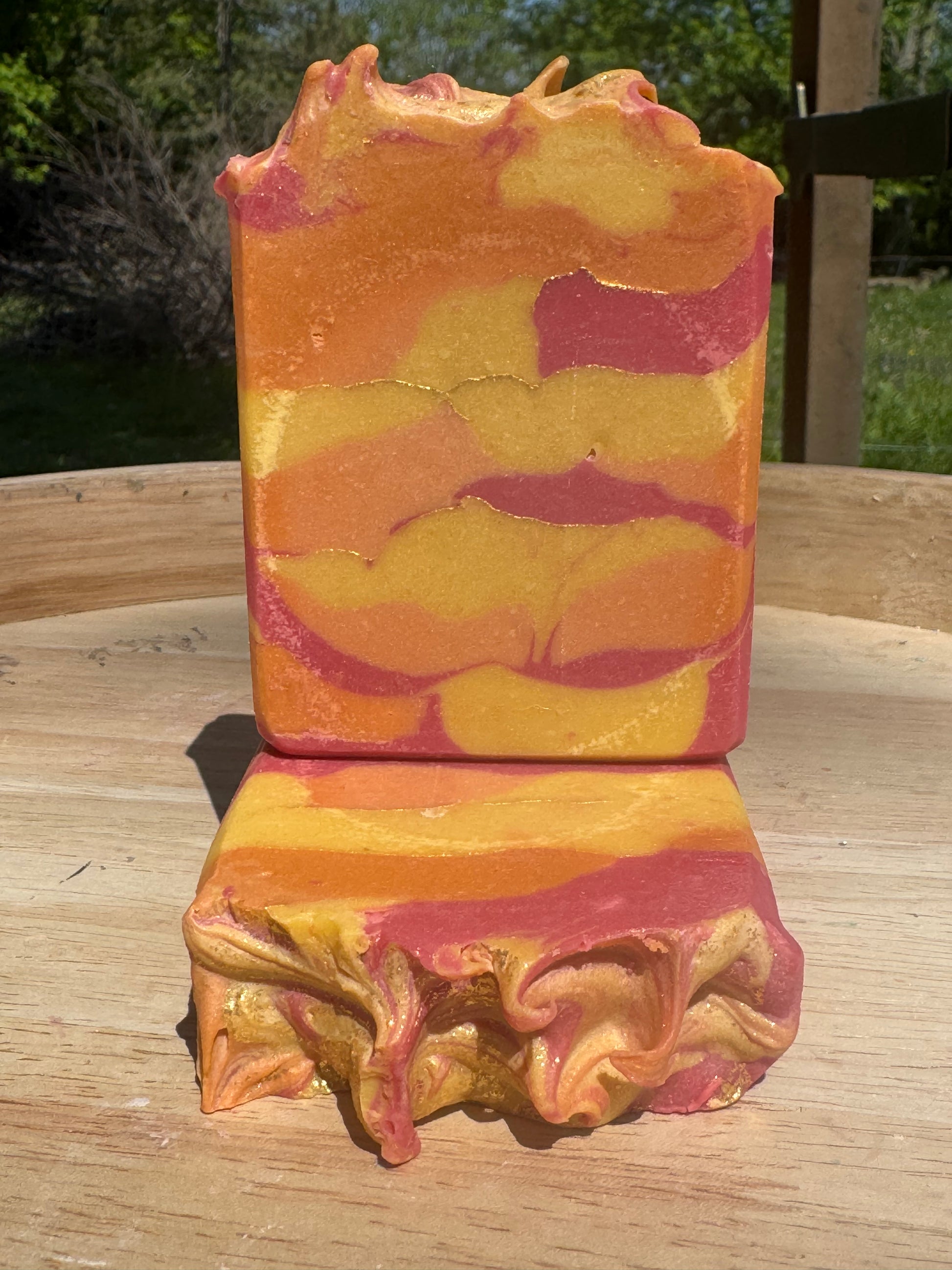 Ingredients: Saponified Oils of Coconut, Olive, Lard, Tallow, Mango Butter. Powdered Goats Milk, Sodium Lactate, Kaolin Clay, Mica, Phthalate Free Fragrance Oil.