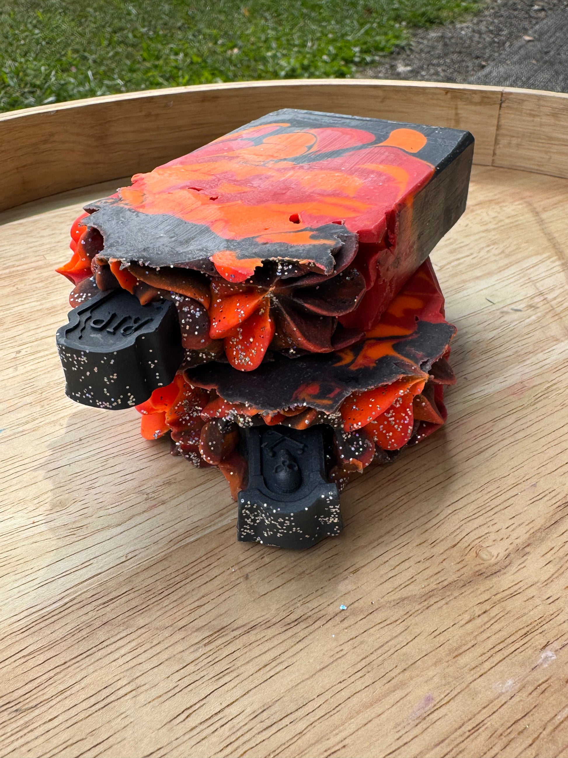 Ingredients: Saponified oils of Lard, Coconut, Olive, Tallow, Grapeseed, and Castor. Powdered Goats Milk, Charcoal, Neon Mica, Fragrance Oil, Sodium Lactate.